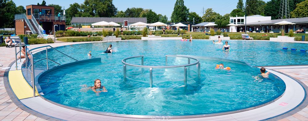 Das neue Erlebnisbecken hat einen Strömungskanal, eine Schaukelbucht, mehrere Bodensprudler sowie Sprudelliegen. Das zweite Becken wird zudem für Aqua-Fitness-Kurse genutzt und hier finden sich Nacken- sowie Massageduschen zum Entspannen. Abseits der Becken laden zusätzlich geschaffene Sitz- und Liegemöglichkeiten, eine vielfältige Bepflanzung und verschiedene Holzelemente nach dem Badevergnügen zum Verweilen ein.